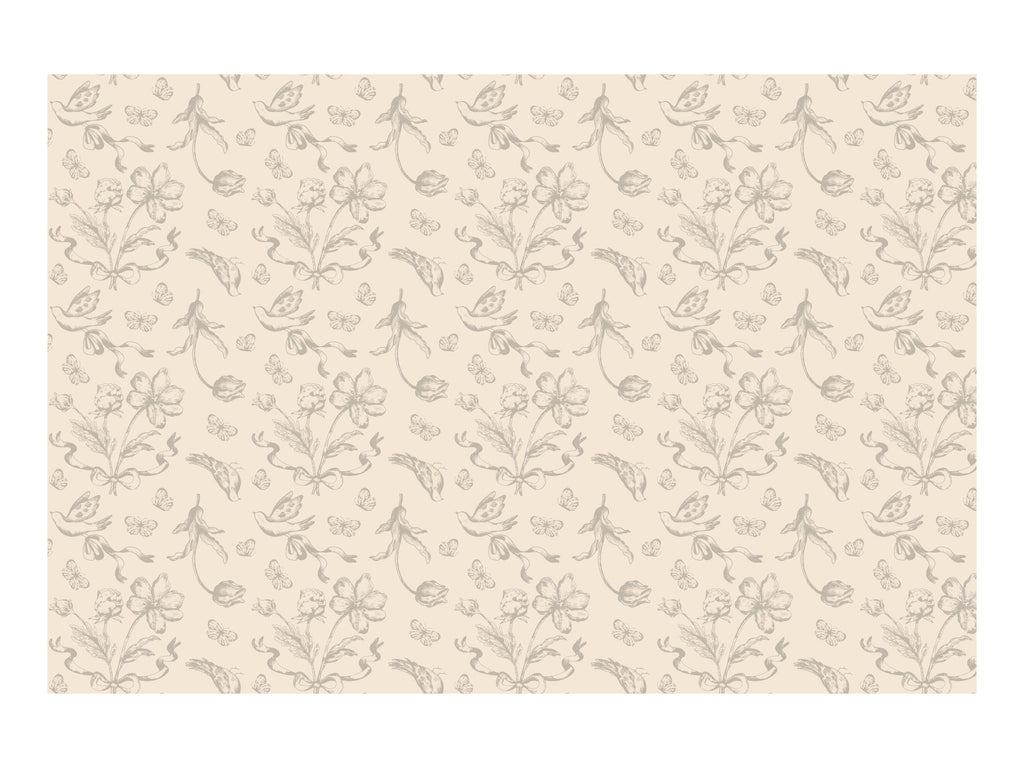 Elegant Floral Design: Beautifully detailed one-sided print featuring dark beige flowers and nature motifs for a classic, rustic look.