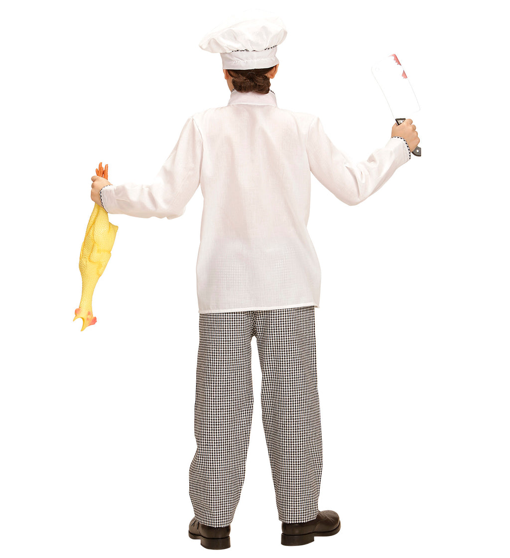Classic Checkered Pants: Includes matching black and white checkered trousers that complete the traditional "Executive Chef" look.