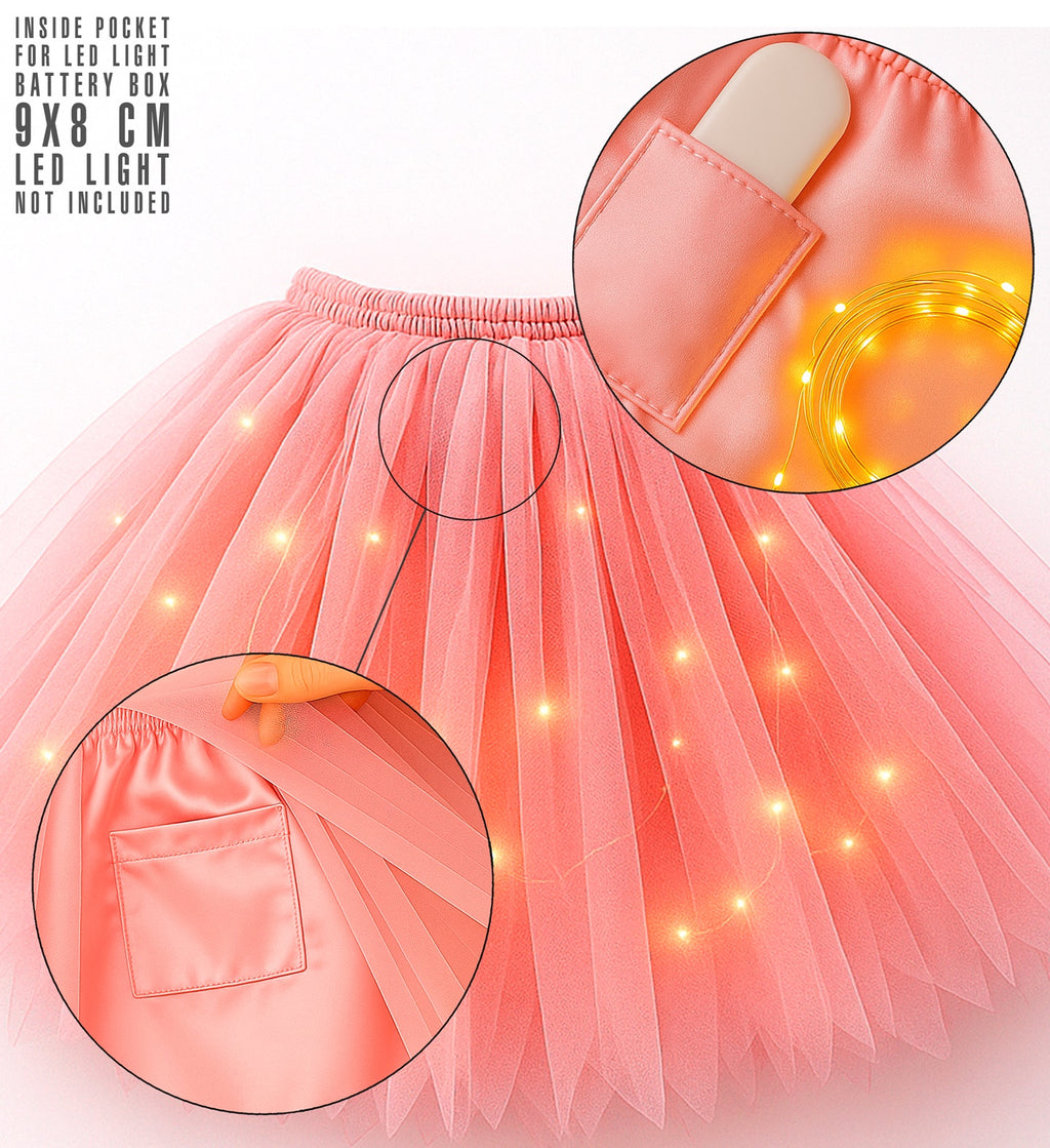 Get ready to twirl, dance, and absolutely glow with our enchanting Pink Layered Tutu! This isn't just a super cute skirt; it's your secret weapon for creating a magical, light-up look that will steal the show.